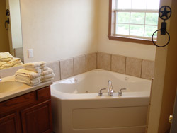 500 square feet. The bathroom has a 2 person Jacuzzi